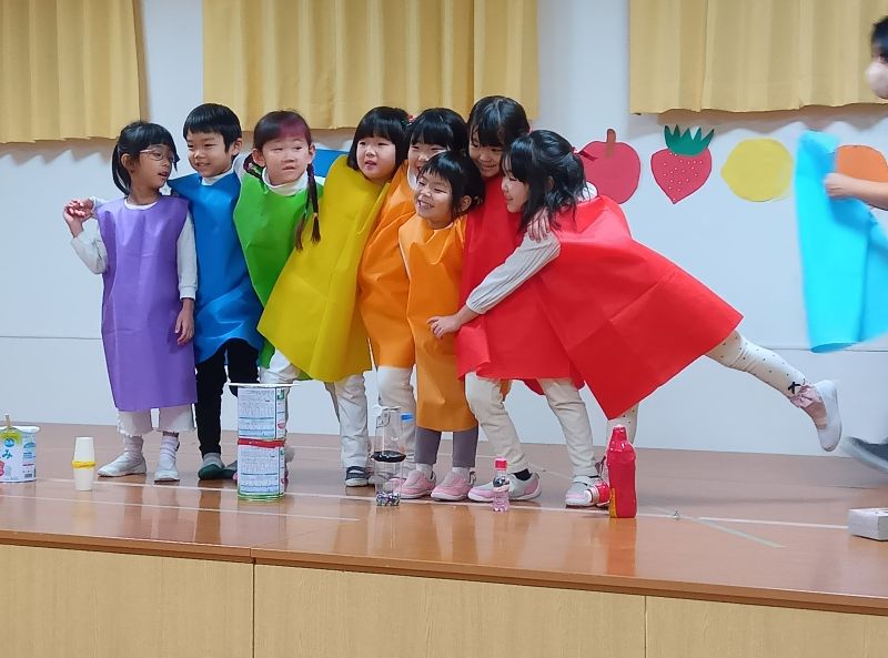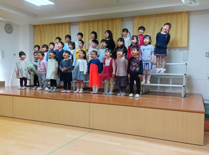 - 12月13日(土)のぞみ保育園のホールでクリスマスおたのしみ会を行いました。各クラスの発表に向けて、準備や練習を進めてきましたが、残念なことに変異株の影響でしょうか、本番の数日前からインフルエンザが一気に感染拡大し、0歳児クラスを中心に多くのクラスで欠席者が出てしまいました。感染防止対策のため、前日当日と子どもたちの動線を何度も見直し、何とか開催できました。各クラスの発表会では休んだ友達の分もフォローしながら、のびのびと演技していました。クリスマス会では、年長クラスのキャンドルサービスの後、お待ちかね、サンタさんが登場し、子どもたちは大喜びでした。インフルエンザで休んでしまったお子さんも早く回復されることを願って終わりました。