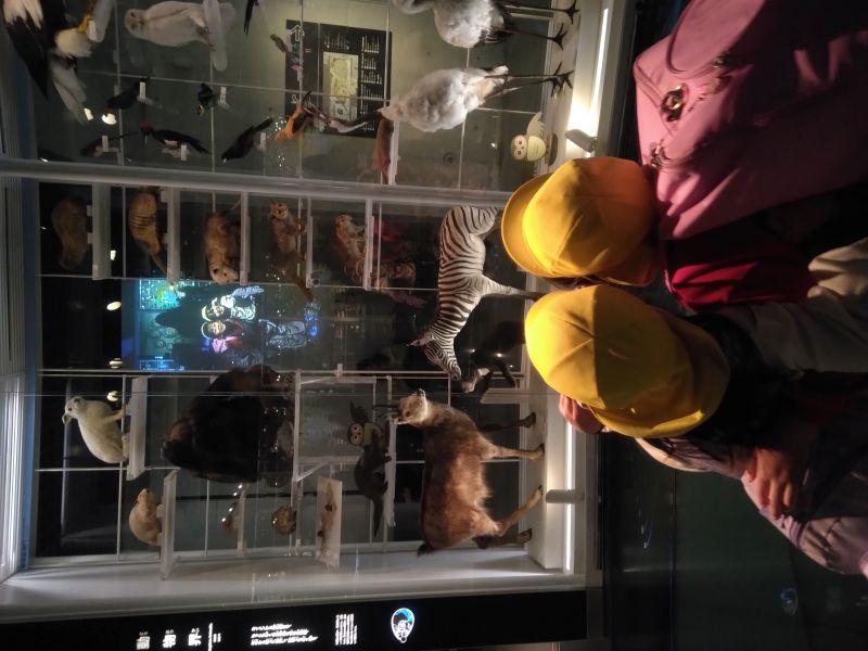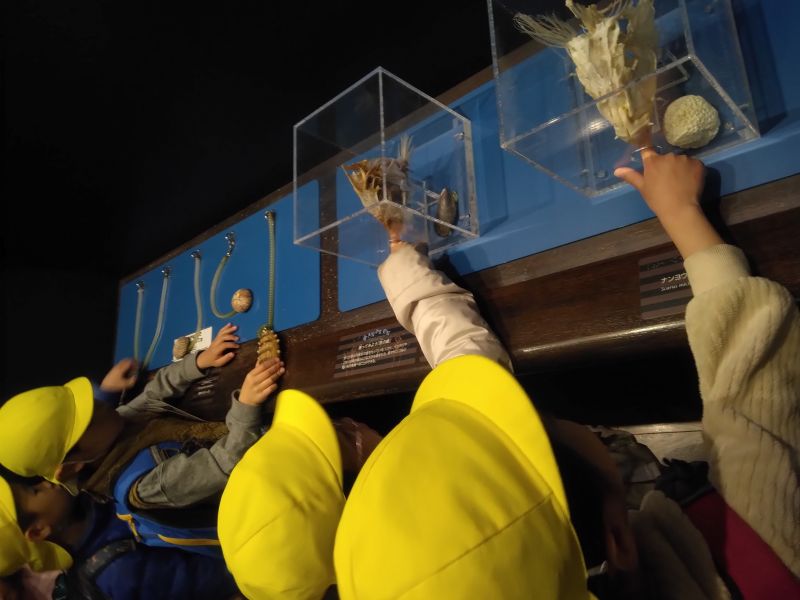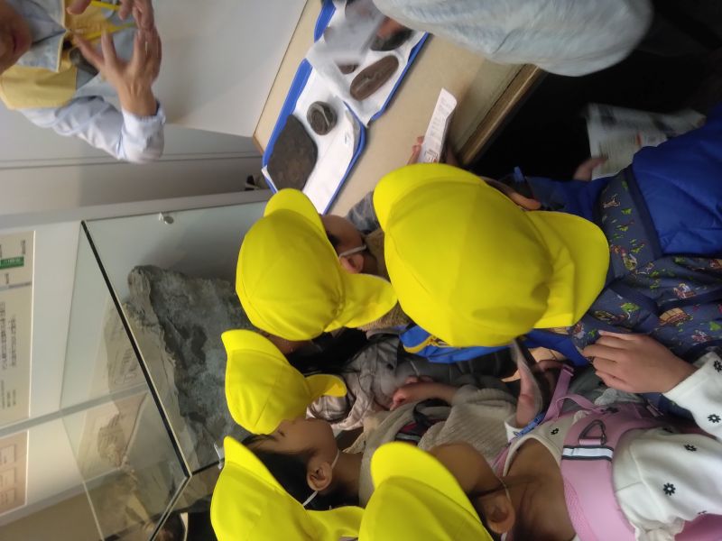 - 3月17日、年長組は卒園遠足で国立科学博物館に行きました。電車で井の頭線、山手線を乗り継いで上野へ。1時間ほどの長旅でしたが、みんな元気に博物館に着きました。まず日本館で日本の成り立ちや生き物の展示を見学しました。皆、興味津々で、説明用のパネルを操作したり、説明役のボランティアの方に質問したりして、なかなか進まず、すごく熱心だなと感心しました。これまでに見聞きした知識をもとに、いろいろ考えながら見学していたようです。眺めの良い屋上のスカイデッキでお弁当を食べてから、午後は地球館を見学しました。ここでは地球全体の成り立ちや生き物の展示がありましたが、日本館とは違った展示スタイルなので、子どもたちも興味深く見ていました。たくさん歩き回って、さすがに疲れたようで、帰りの電車がすいていたこともあり、休みながら帰りました。時間があればもっとたくさん見たかったようです。